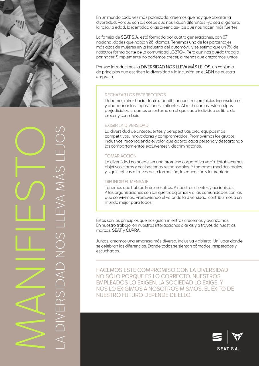 El "Manifesto SEAT S.A.: La diversidad nos lleva más lejos" es el siguiente: